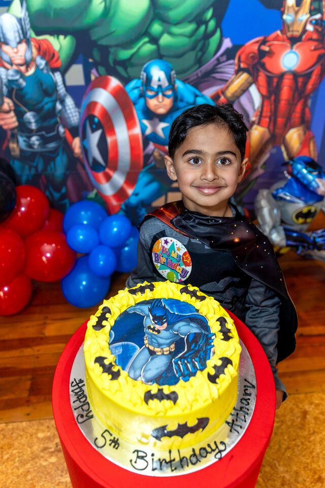 The moment we arrived, the room was alive with excitement — walls decorated in bold superhero colours, tables lined with themed treats, and kids running around in capes and masks. The atmosphere was buzzing with laughter, cheerful music, and proud parents chatting as the little ones raced around.