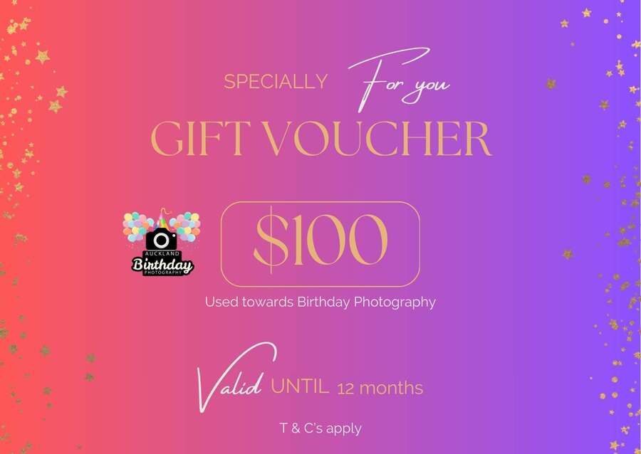 Give the gift of memories! This $100 Auckland Birthday Photography Gift Voucher can be used towards any photo session – from birthdays to family shoots. Valid for 12 months.