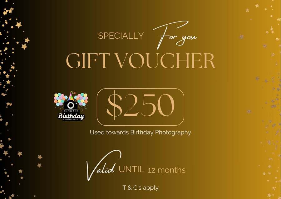 Give the gift of memories! This $250 Auckland Birthday Photography Gift Voucher can be used towards any photo session – from birthdays to family shoots. Valid for 12 months.